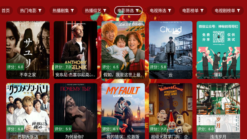 1.根据用户的观影历史和偏好,智能推荐符合个人口味的影视作品。无论是喜欢科幻大片、爱情剧还是悬疑推理,用户都能快速找到自己喜欢的内容,节省选片时间。