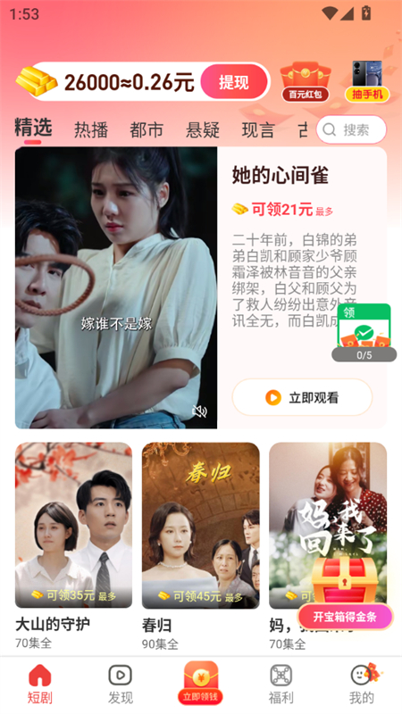 繁星乐看app是一款手机看剧赚钱平台,不同类型的短剧满足你的观看所需,还可以分享热门短剧到朋友圈,随时随地轻松看剧轻松赚收益,提供高清流畅的播放体验。对软件感兴趣的话不妨点击下载试试!