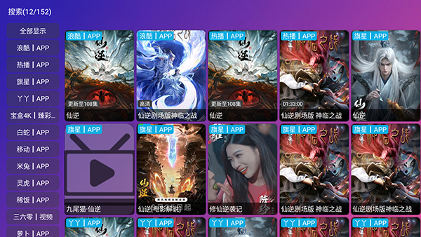 聚合了来自多个网络源的直播(如央视、卫视、地方台、体育赛事)和点播内容(电影、电视剧、综艺、动漫)。