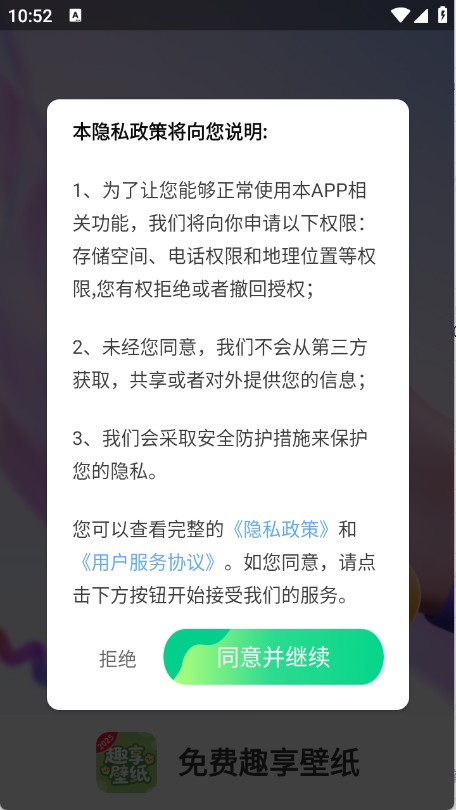1、用户首先在本站下载免费趣享壁纸app,查看并同意隐私政策与用户协议。