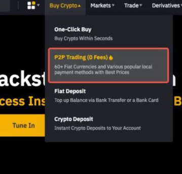 1、打开B原子链交易所,首页点击点选导览列左上角的快速买币P2P交易,进入P2P交易页面。