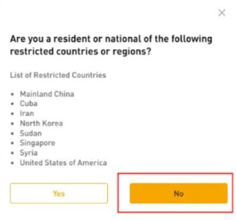 3、点击“继续”,将出现下图所示窗口。如果您不是来自上述受限制国家或区域,选择“否”,继续注册。