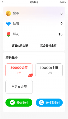 2、在下方选择充值金额或者自定义输入金额进行充值。