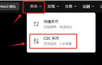 6、此时USDT已经转到欧易交易所内,打开欧易交易所,点击首页【买币】,选择【C2C买币】