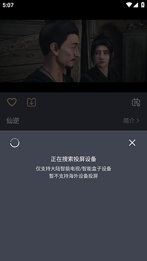 4、点击投屏功能,等待软件搜索投屏设备即可。