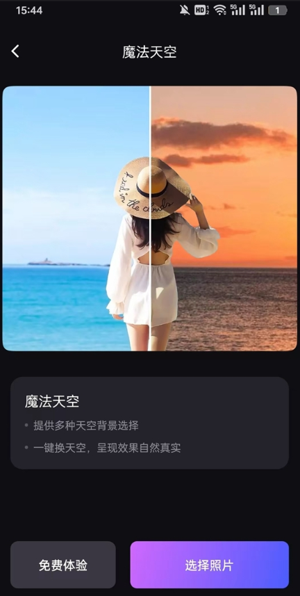 2.在照片编辑界面有很多功能,这里选择魔法天空