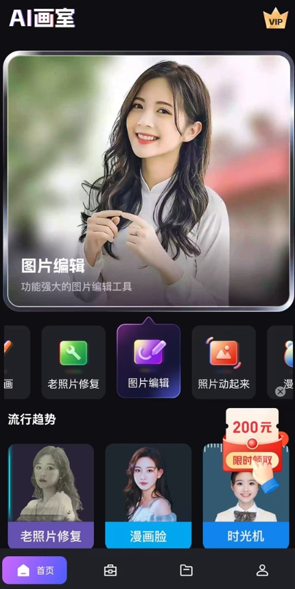 1.专业图片编辑功能,支持一键拼图、抠图与老照片修复,还原画面真实质感