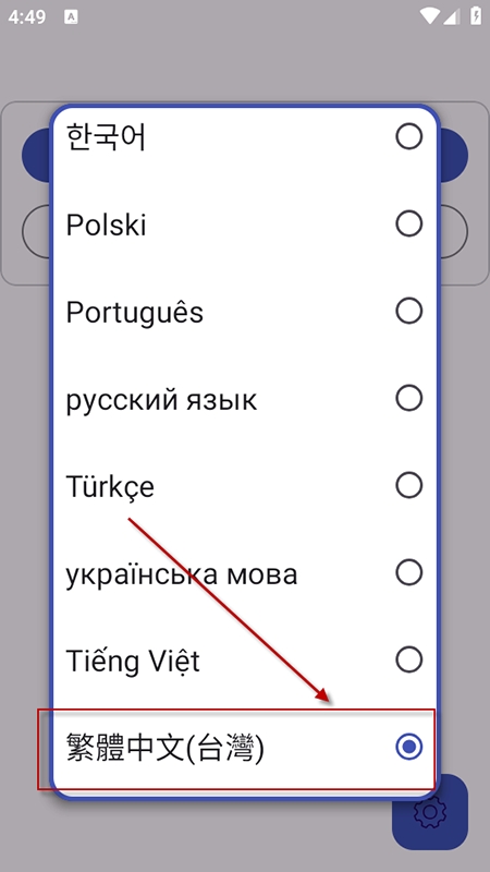 3、选择“繁体中文”将界面语言设置为中文。