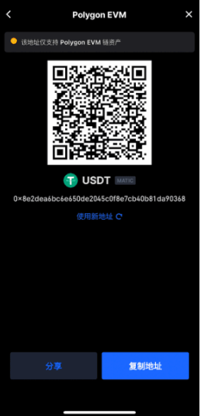 第二步:选择充值代币及所属网络,复制接收地址