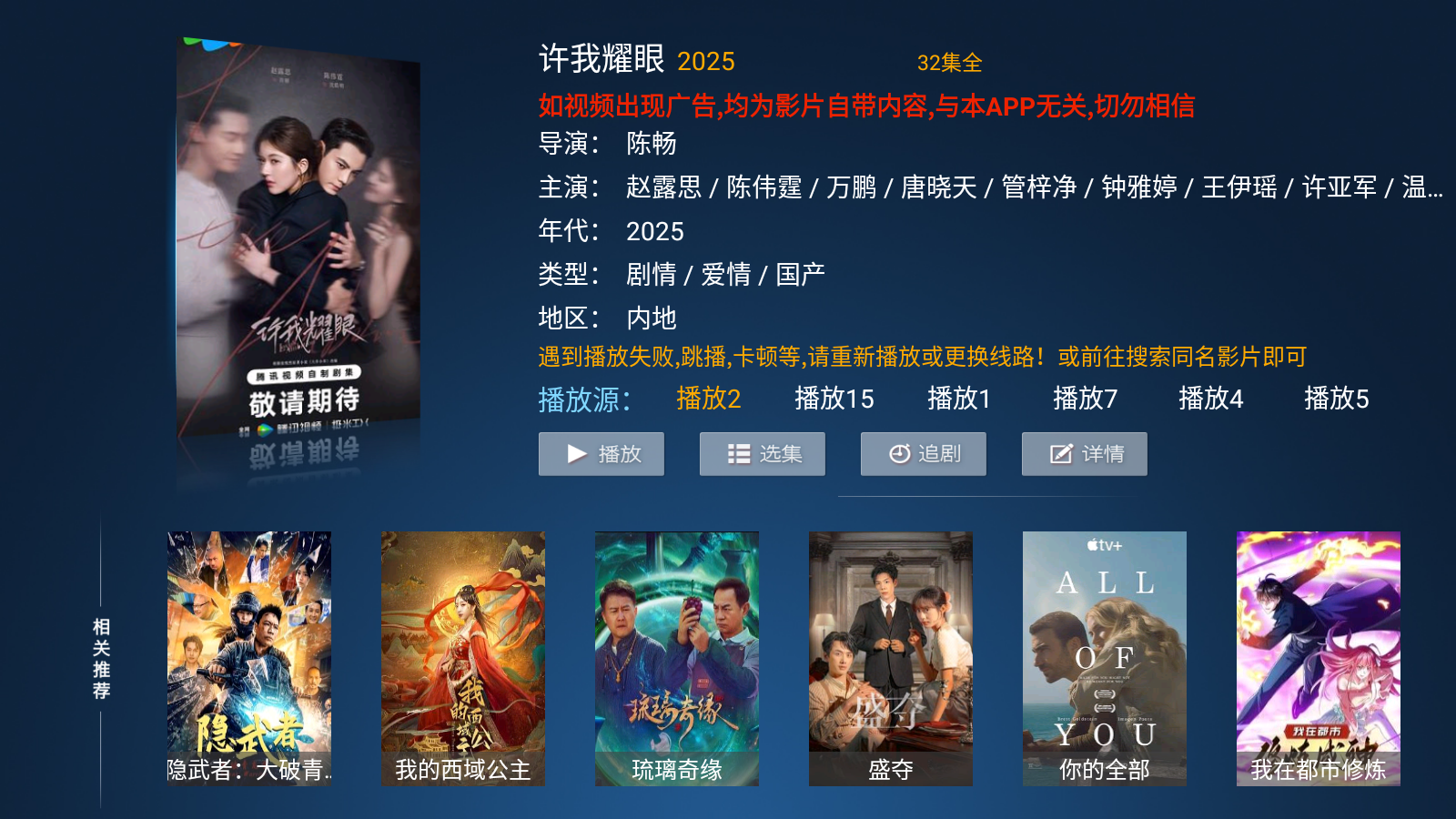 支持影片缓存至本地,无网络也能观看;倍速调节(0.5x-2.0x)满足快速追剧或细节回放需求。