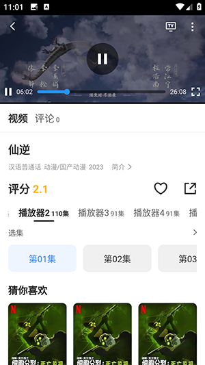 2、在播放页面,如果一直加载不出来可以切换播放源。
