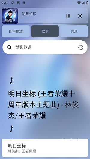 5、安装完成后,再次点击搜索框,点击对应的歌曲即可显示歌词。