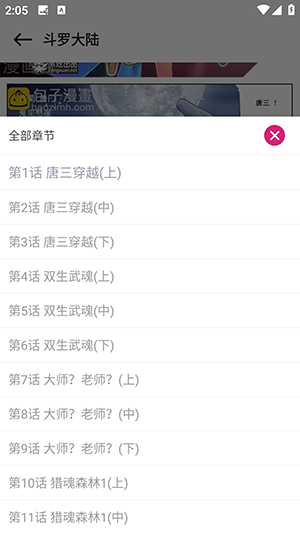 3、点击下方中间的菜单选项,可以查看漫画章节。