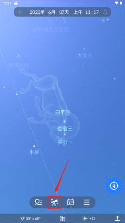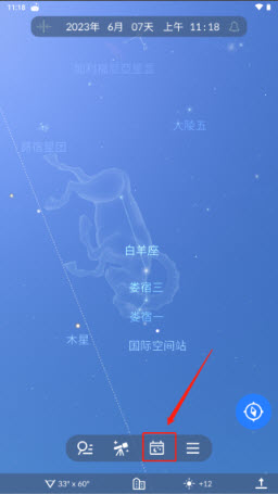 3.点击下方的【望远镜】图标,查看当天能看到的星宿及时间;