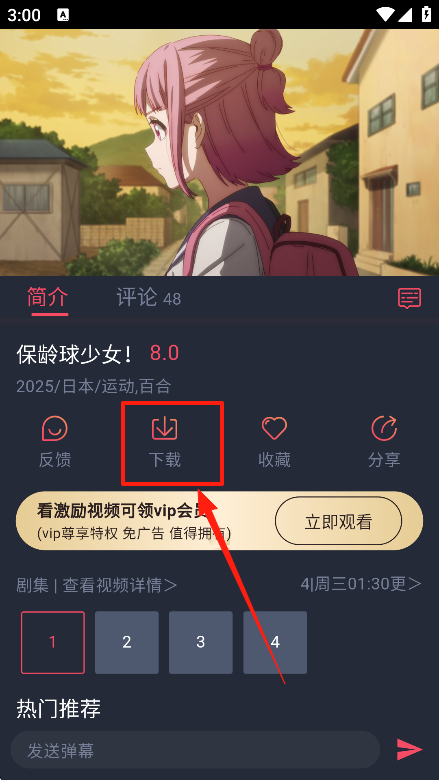 1、选择感兴趣的动漫进入到播放页面。
