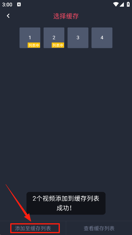 3、勾选需要下载的剧集内容点击添加至缓存列表。