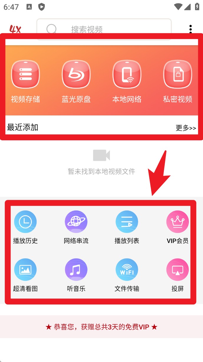 4、下方功能区中也可快速访问「播放历史」、「网络串流」、「超清看图」等选项。