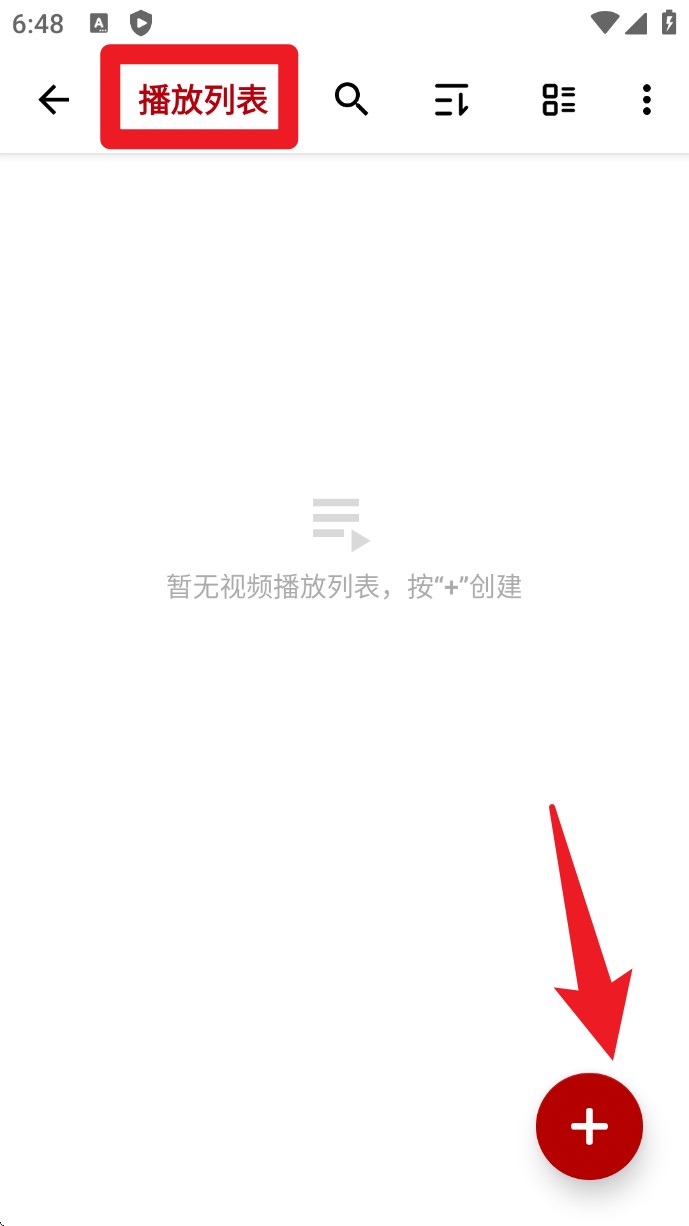 2、进入「播放列表」页面,点击右下角的+号按钮,自定义新增播放清单。
