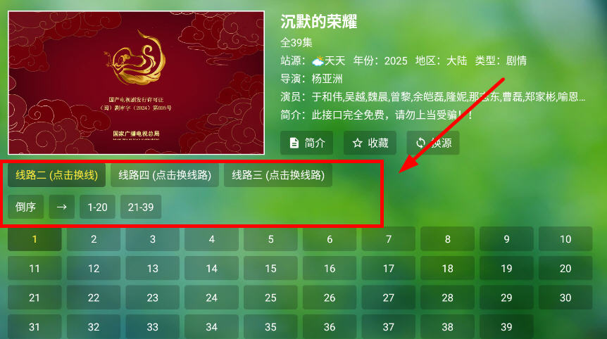 5、点开直接跳转播放,可以调整播放源和观看集数。