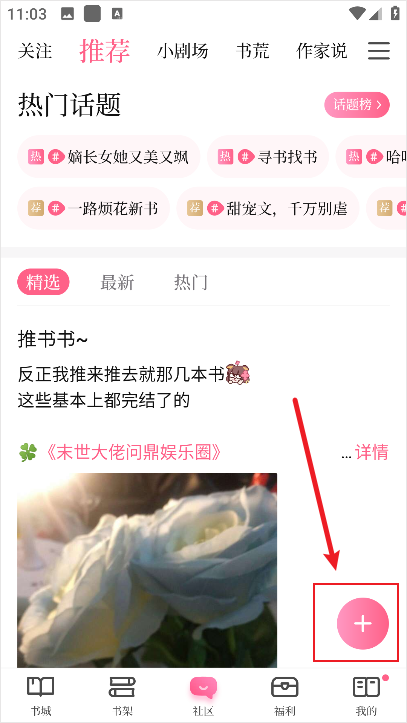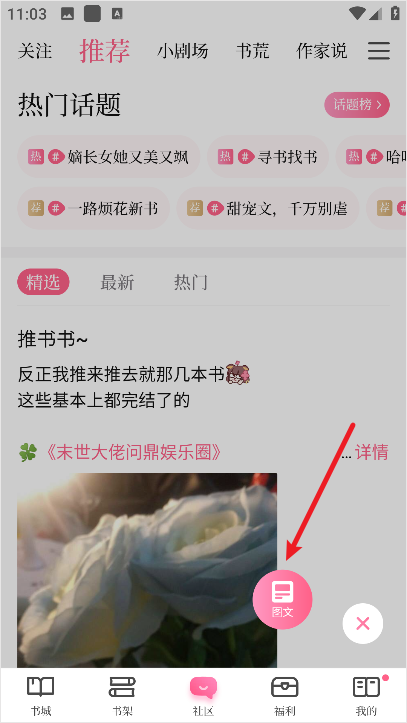 1、进入红袖添香手机版后点击下方社区