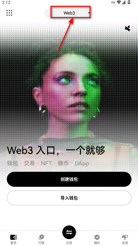 首先打开应用程序,进入首页后点击“web3”功能入口。