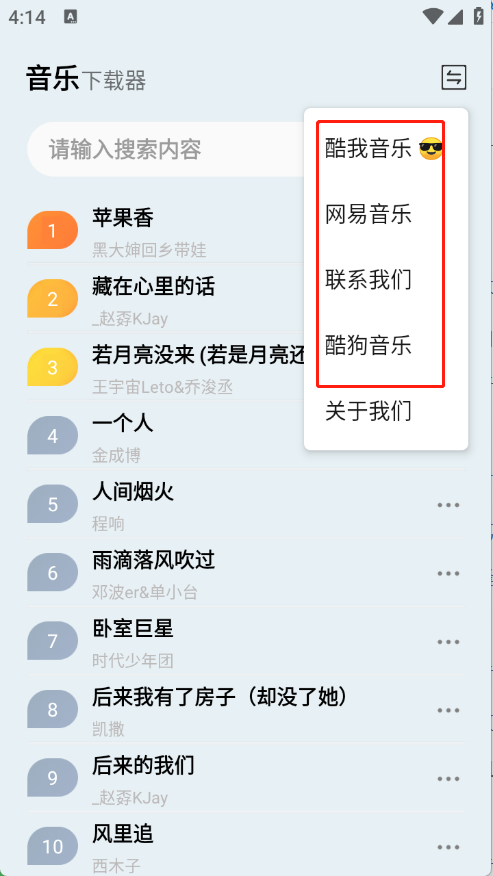 2、可自由切换酷我、酷狗、网易云等音乐源,保障资源覆盖。