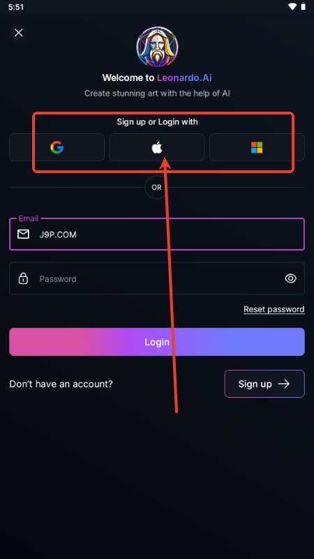 3、也可以选择谷歌或者苹果账号登录;