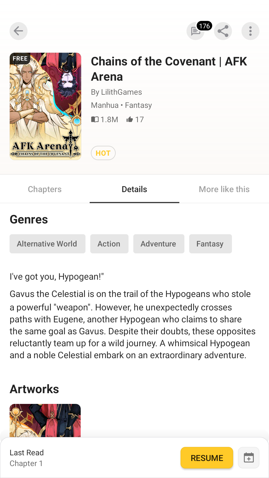 3、还有漫画详细介绍,点击右下角的resume就可以开始阅读了。