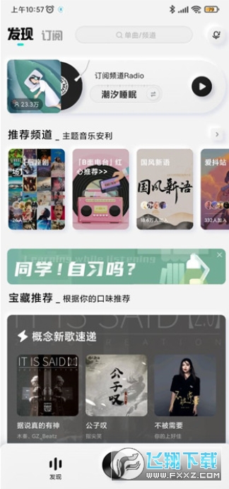 3、点击订阅,可以查看刚才你所加入的频道的音乐