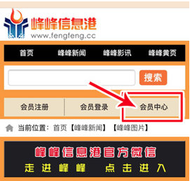 2、在峰峰信息港首页看到【会员中心】,点击进入。