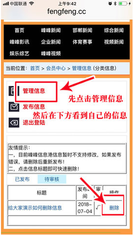峰峰信息港App怎么删除自己发布的信息?