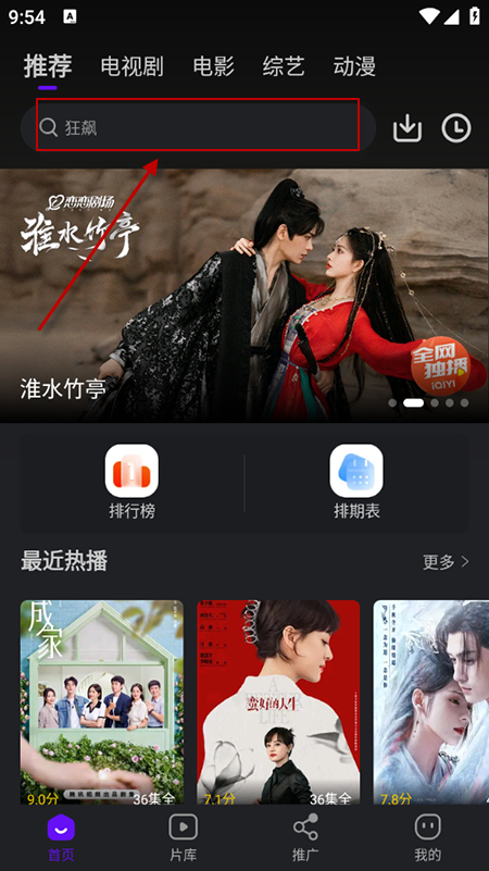 2.也可以在顶部搜索框中输入关键字,找到影片播放。