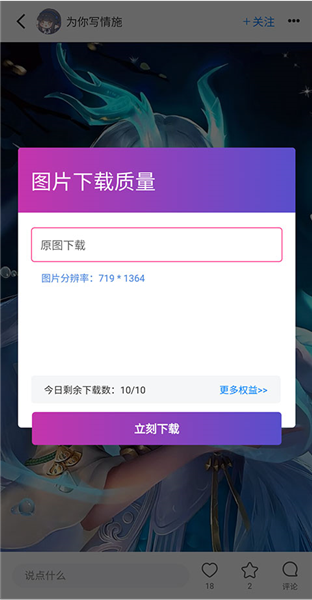 3、接着选择【图片下载质量】,点击【立刻下载】。