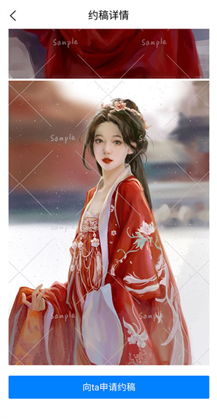 5、最后滑动至页面最下方,点击【向ta申请约稿】即可。