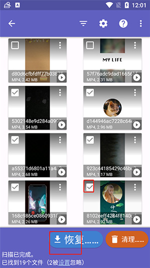 2、系统会自动扫描你手机上的可恢复的视频。