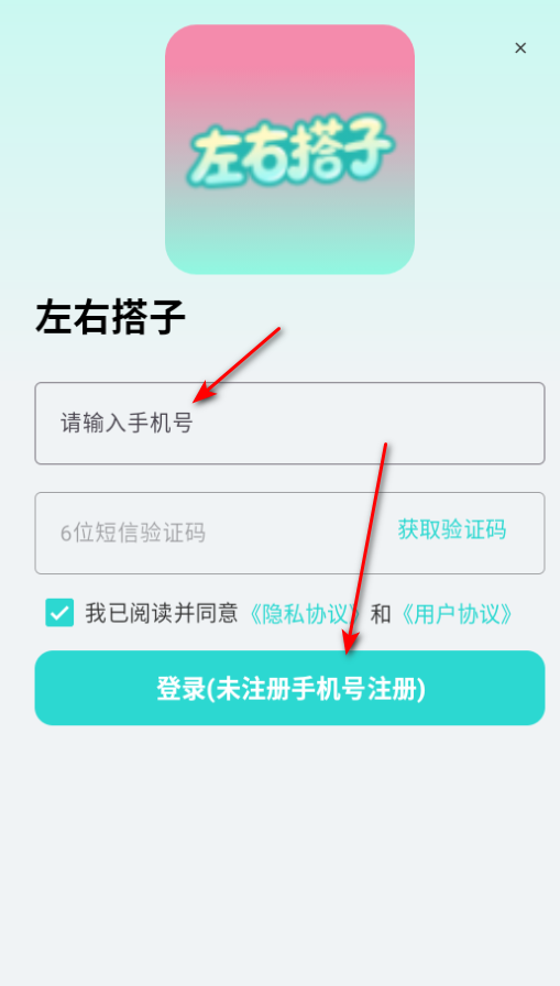 输入手机号,获取验证码即可登录
