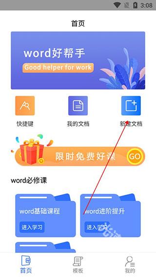 1、打开熊猫办公后,可在首页学习到关于word的基本信息以及小技巧,学习完后,可以选择新建文档。