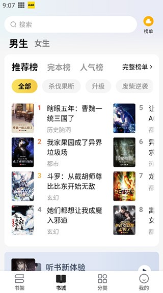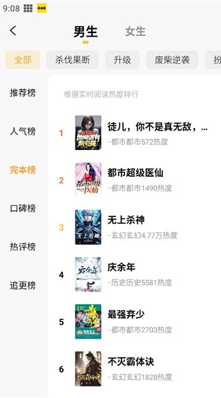 1、打开小说阅读星,在书城有推荐榜、完本榜、人气榜等排行榜为你推荐最新最热门的书籍。