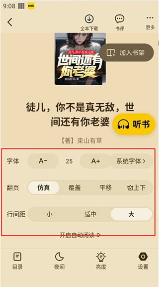 4、当你阅读时,点击设置按钮可以自由调整字体大小、行间距等。