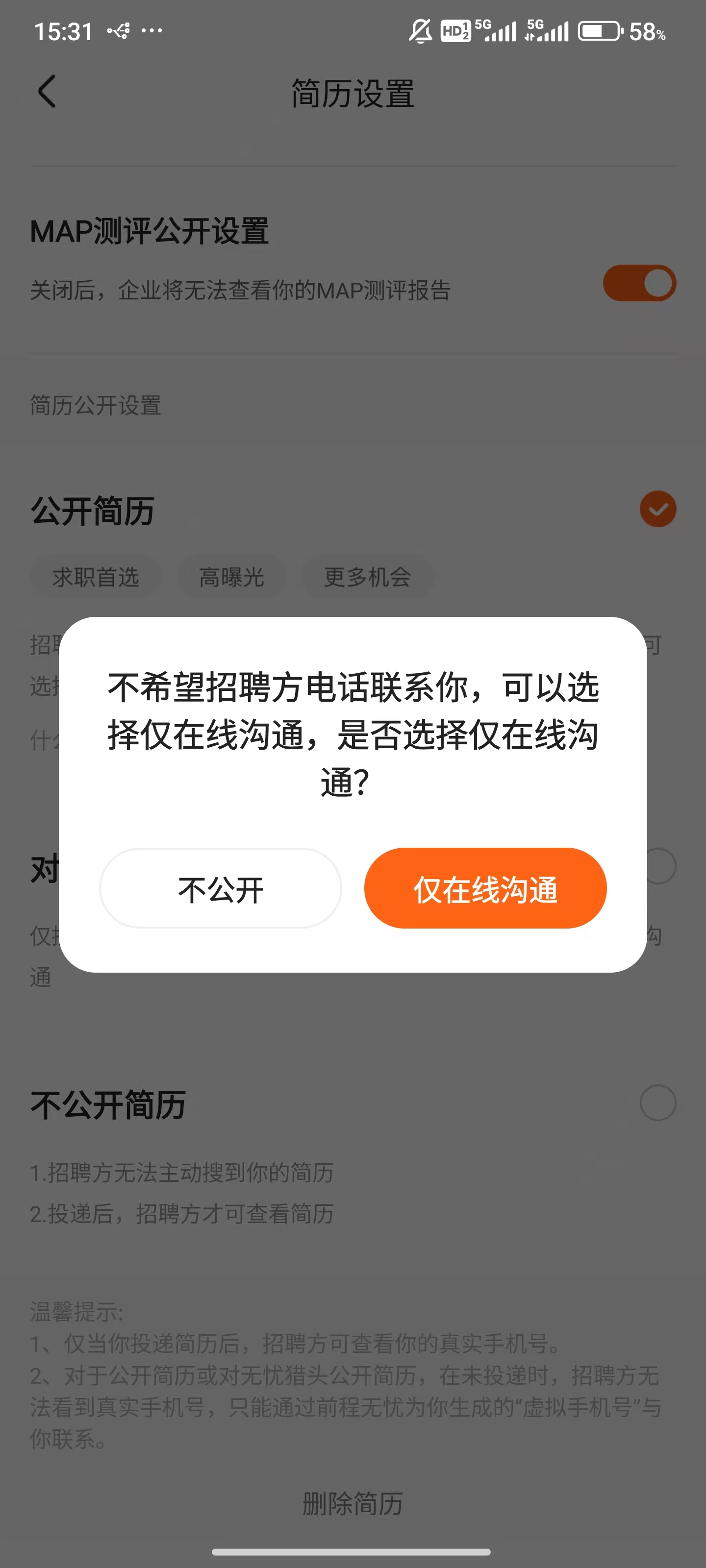 5、可因个人意愿自行选择,简历已经完成了隐藏操作。