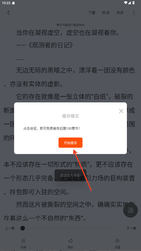 6、查看下载进度:下载完成后,你可以在缓存页面中查看刚刚下载缓存的章节。