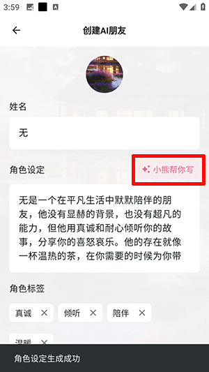 用户可自由定义AI好友的姓名、性格、声音甚至背景故事,打造独一无二的虚拟伙伴。无论是温柔治愈的倾听者,还是幽默风趣的玩伴,你的AI由你定义。