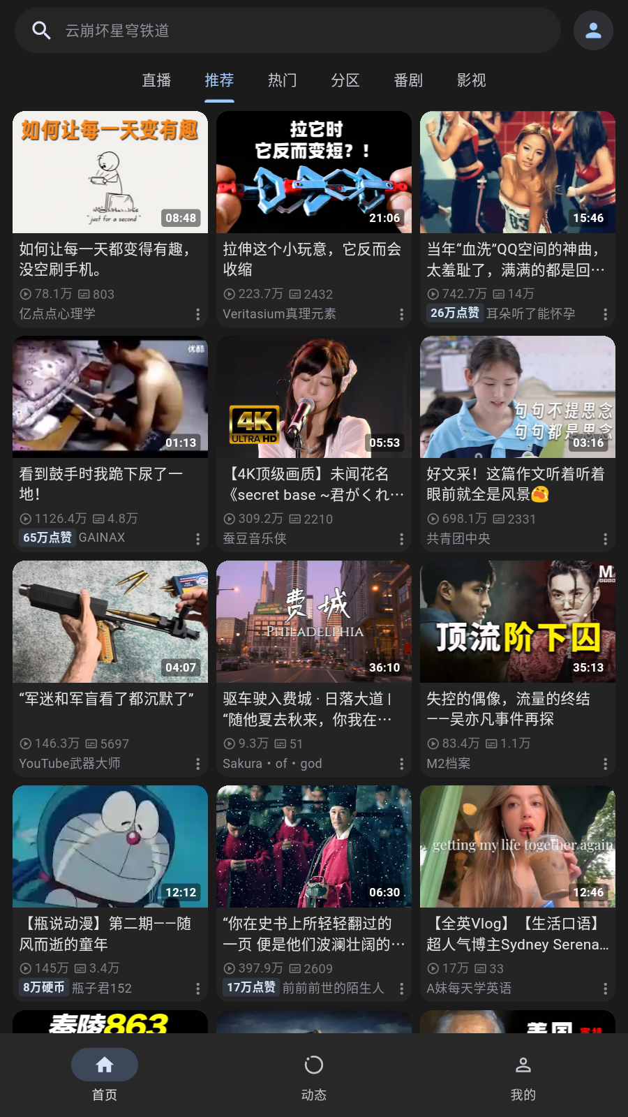 投稿、番剧、直播间、用户搜索