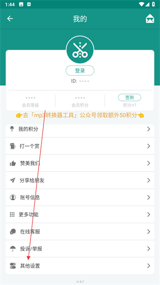 2、在个人中心页面,找到其他设置并点击。