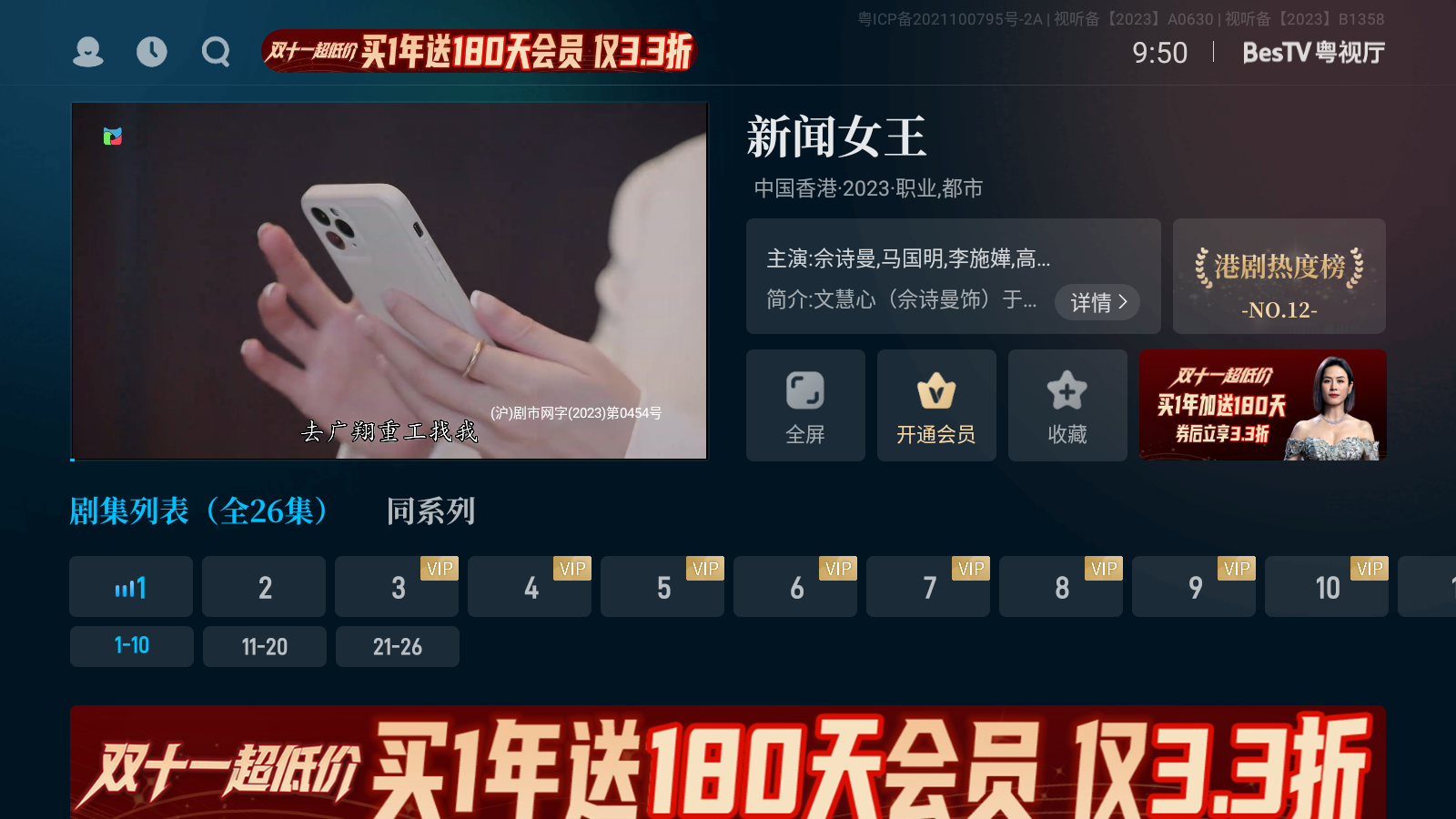 bestv 粤视厅是一款专为港剧爱好者量身打造的影视视频观看软件,搭配高清画质与流畅无卡顿的播放体验,更支持多视窗同时观看不同影片,为喜爱港剧的用户带来轻松愉悦的大屏享受。