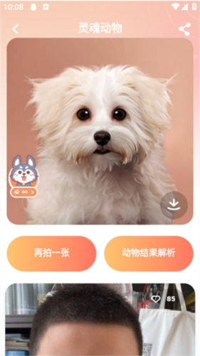 3、拍摄完成之后系统将自动辨别以及更改形象,使得照片转变为具有个人特色的小动物,如果想要保存可以点击右下角的下载处;