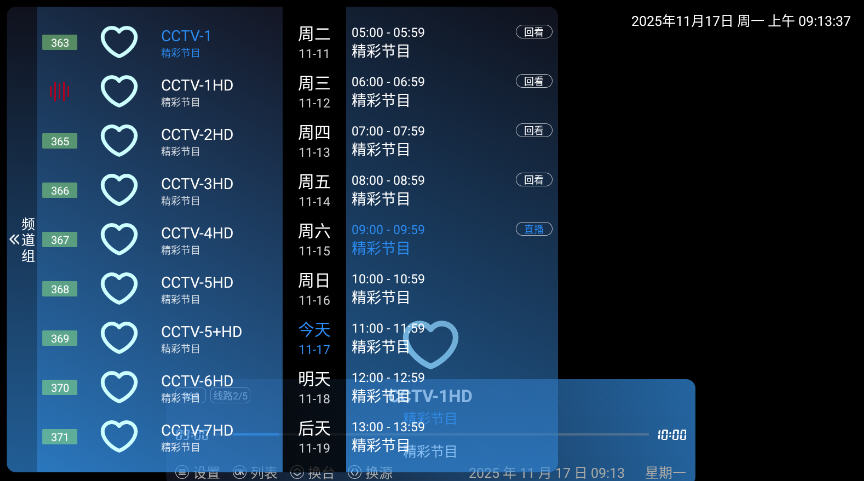 全频道电视直播,实时同步无延迟