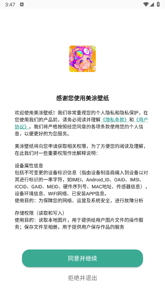 1、下载好美涂壁纸app之后,查看并同意相关政策与协议。