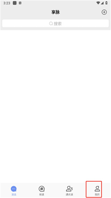 1、首先打开享脉app,进入到首页中后可以切换到频道、通讯录、我的页面,我们点击右下角的【我的】;