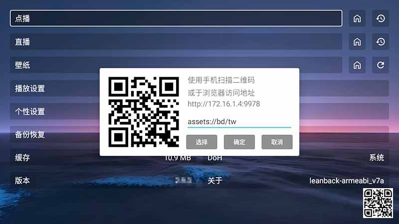2、在首页的设置中手动导入接口,assets://bd/tw 或 assets://tw/bd